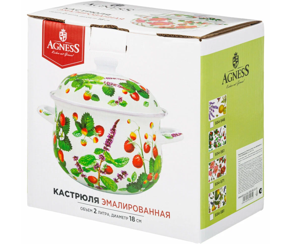 Кастрюля 934-571 agness эмалированная с крышкой серия шиповник, 2 л