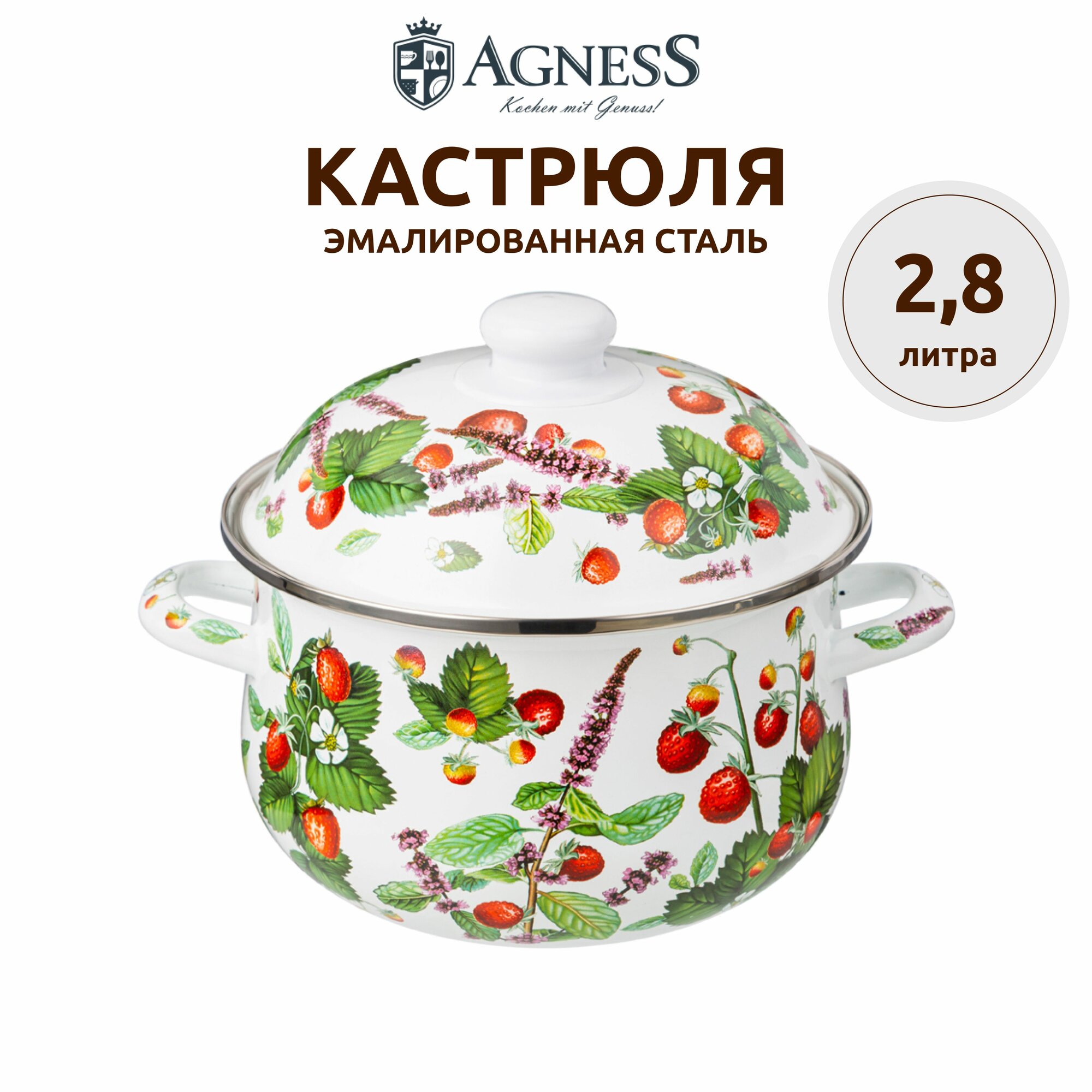 Кастрюля agness эмалированная с эмал. крышкой серия "Шиповник", 5.0 л, 24*14 см