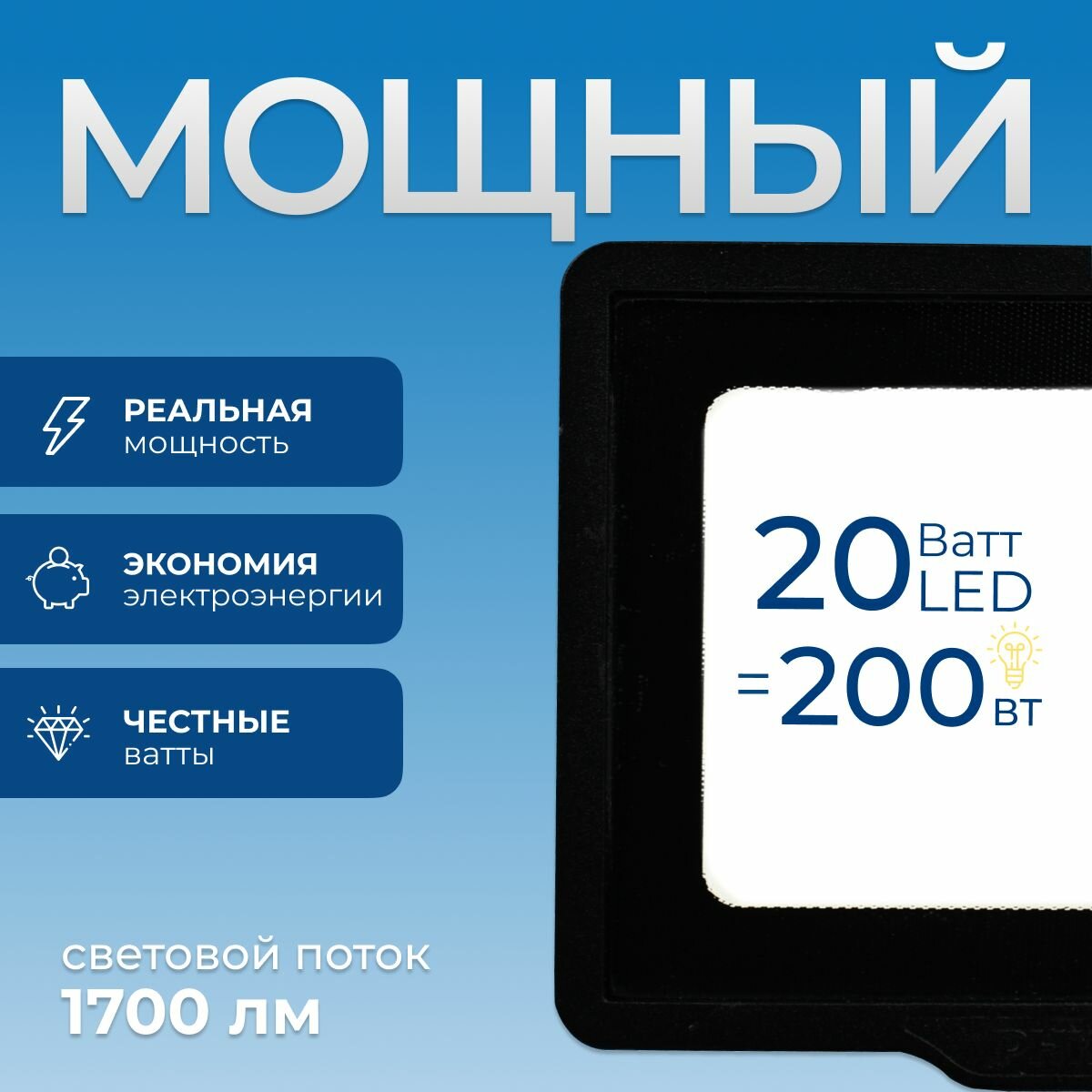 Прожектор космос 20Вт, 1600Лм, IP65, 6500K, Super-Slim