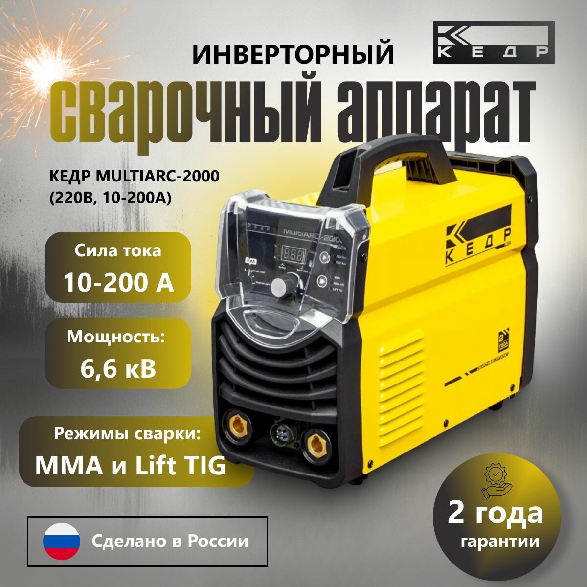 Сварочный инверторный аппарат кедр MultiARC-2000 (220В, 10-200А) MMA ручная дуговая сварка