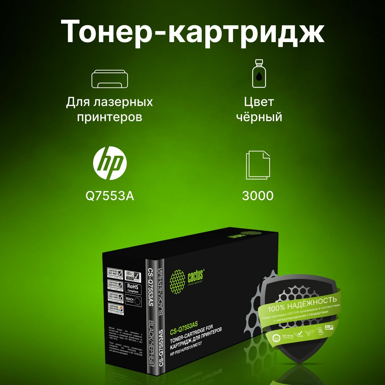 Картридж лазерный CACTUS (CS-Q7553AS) для HP LaserJet 2015/2015n/2014, ресурс 3000 страниц