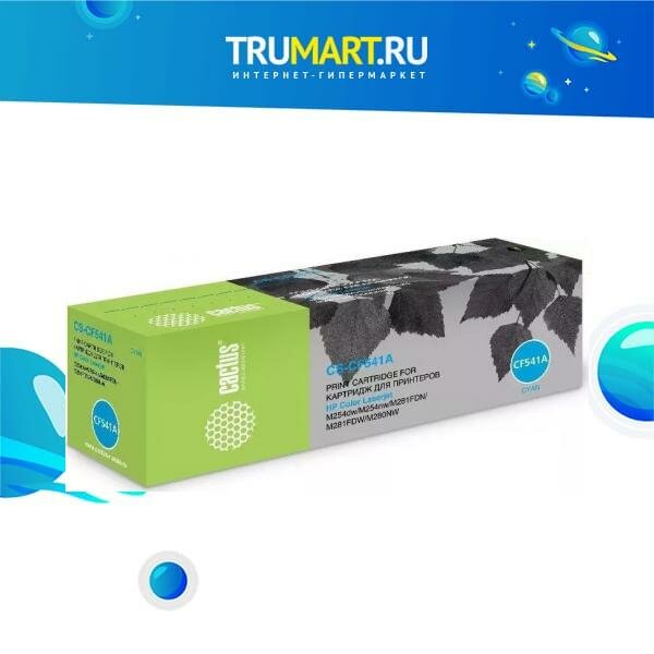 Купить Картридж Cactus CS-CF541A CF541A голубой, для HP LJ M254dw/M280nw/M281fdn, ресурс до 1400 страниц