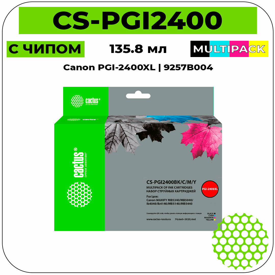 Купить Cactus CS-PGI2400BK/C/M/Y картридж струйный (Canon PGI-2400XL - 9257B004) цветной + черный 135.8 мл