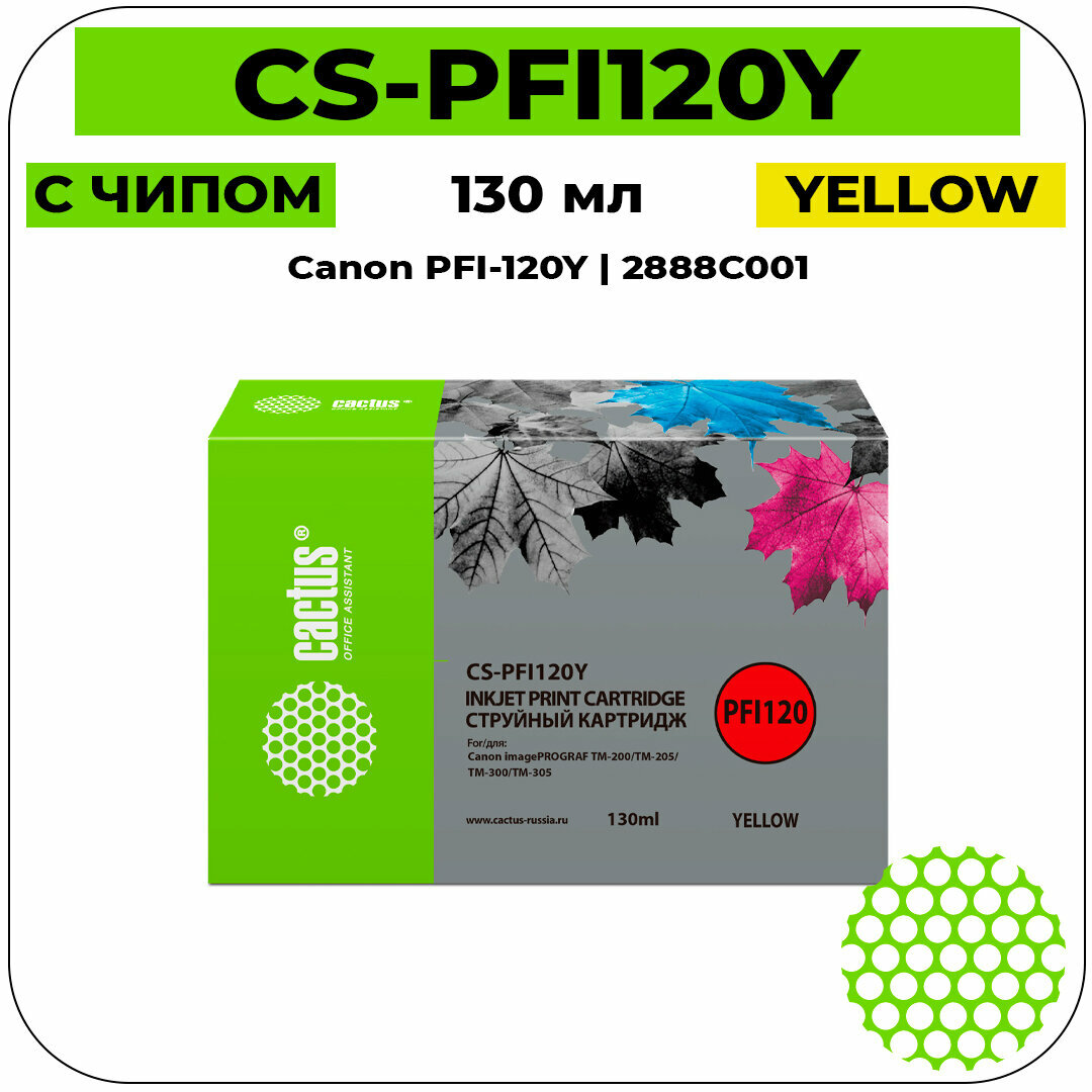 Купить Картридж Cactus CS-PFI120Y желтый, для CANON imagePROGRAF TM-200/TM-205/TM-300/TM-305