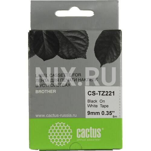 Ленточный картридж CACTUS CS-TZ221 TZe-221 черный, для Brother 1010/1280/1280VP/2700VP 807027