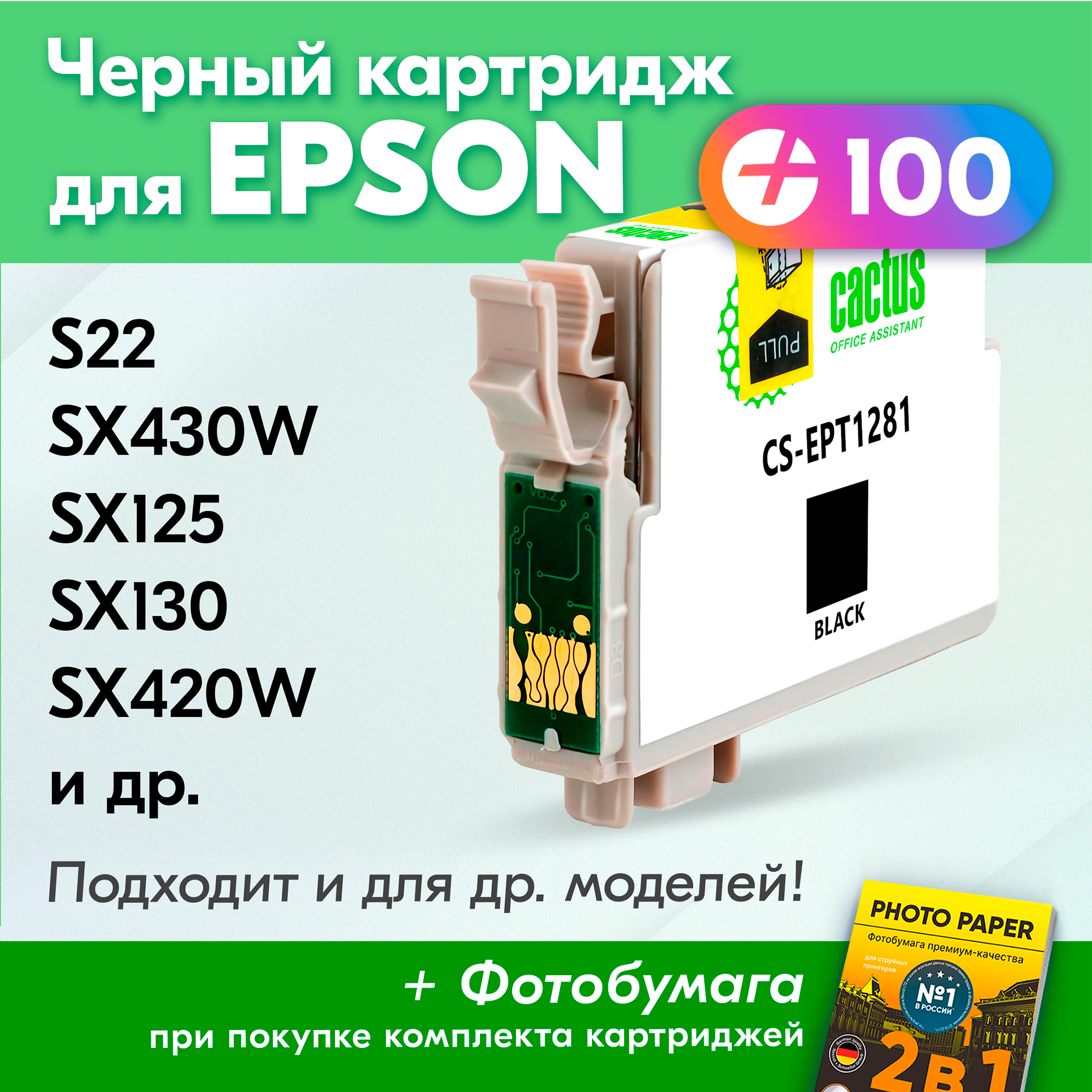 Картридж Cactus CS-EPT1281 T1281 черный, для EPSON Stylus S22/S125/SX420/SX425/Office BX305