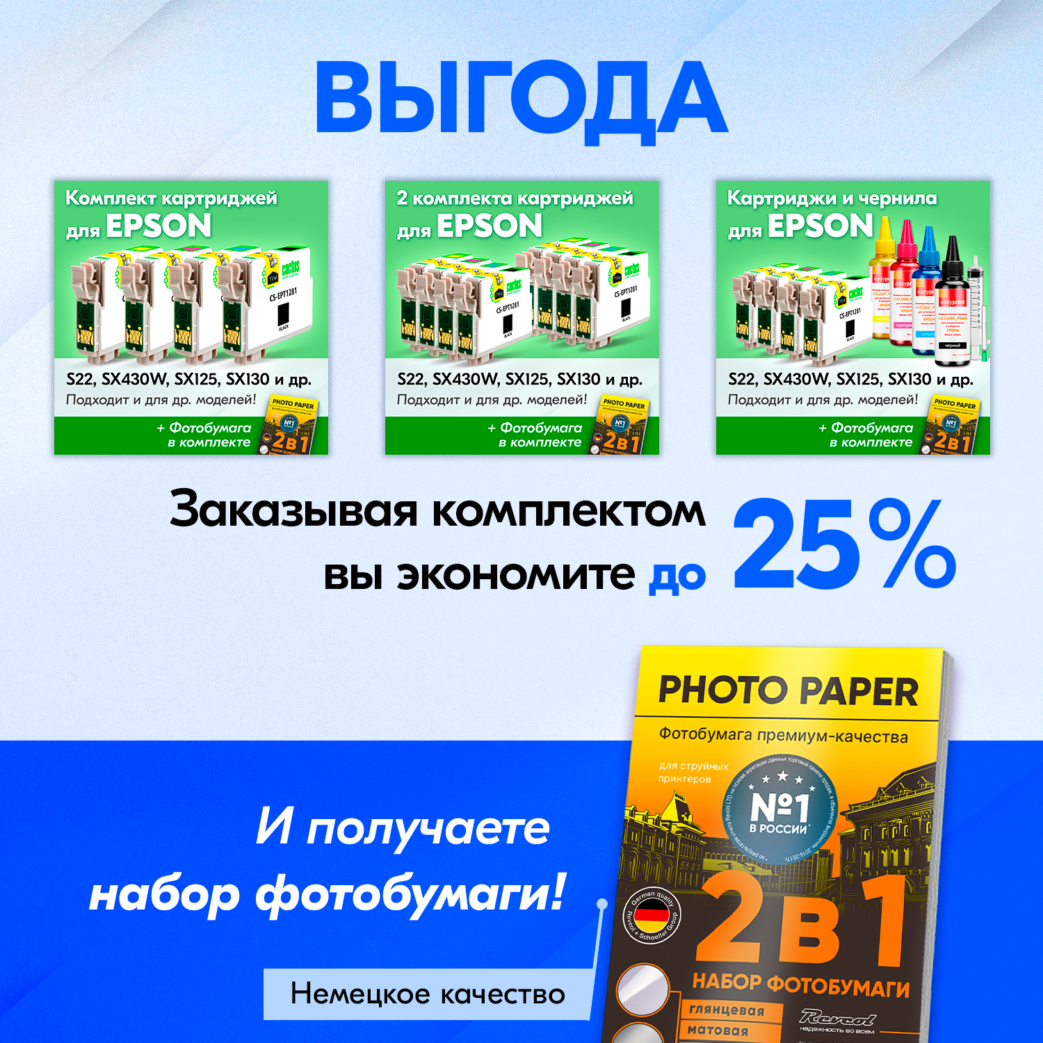 Картриджи для Epson T1281-T1284, Epson Stylus Photo S22, SX430W, SX125, SX130, SX420W и др. Комплект из 4 шт, заправленные для струйного принтера