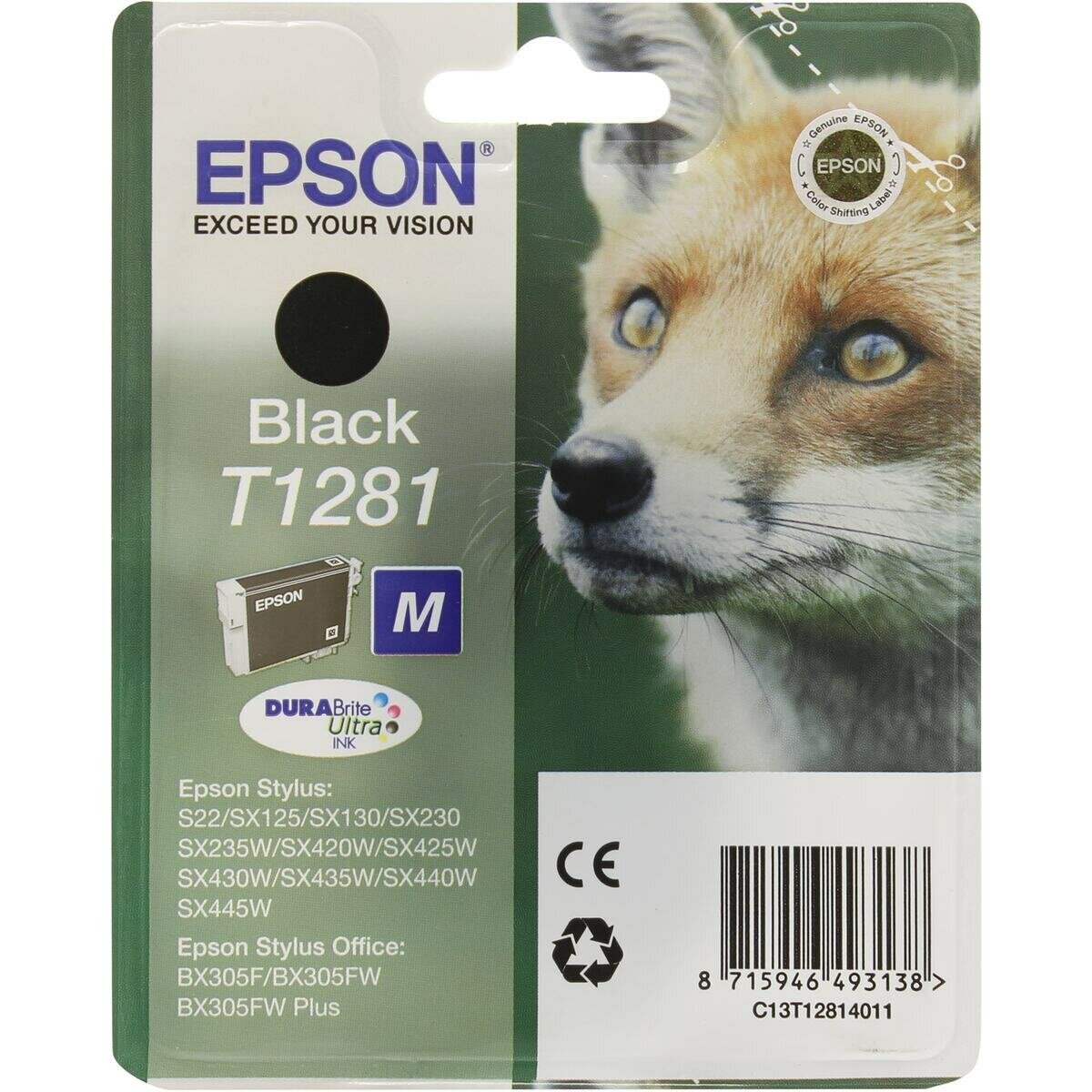 Картридж EPSON T1281 для Stylus S22/SX125/SX420W/SX425W Office BX305F/BX305FW (черный)