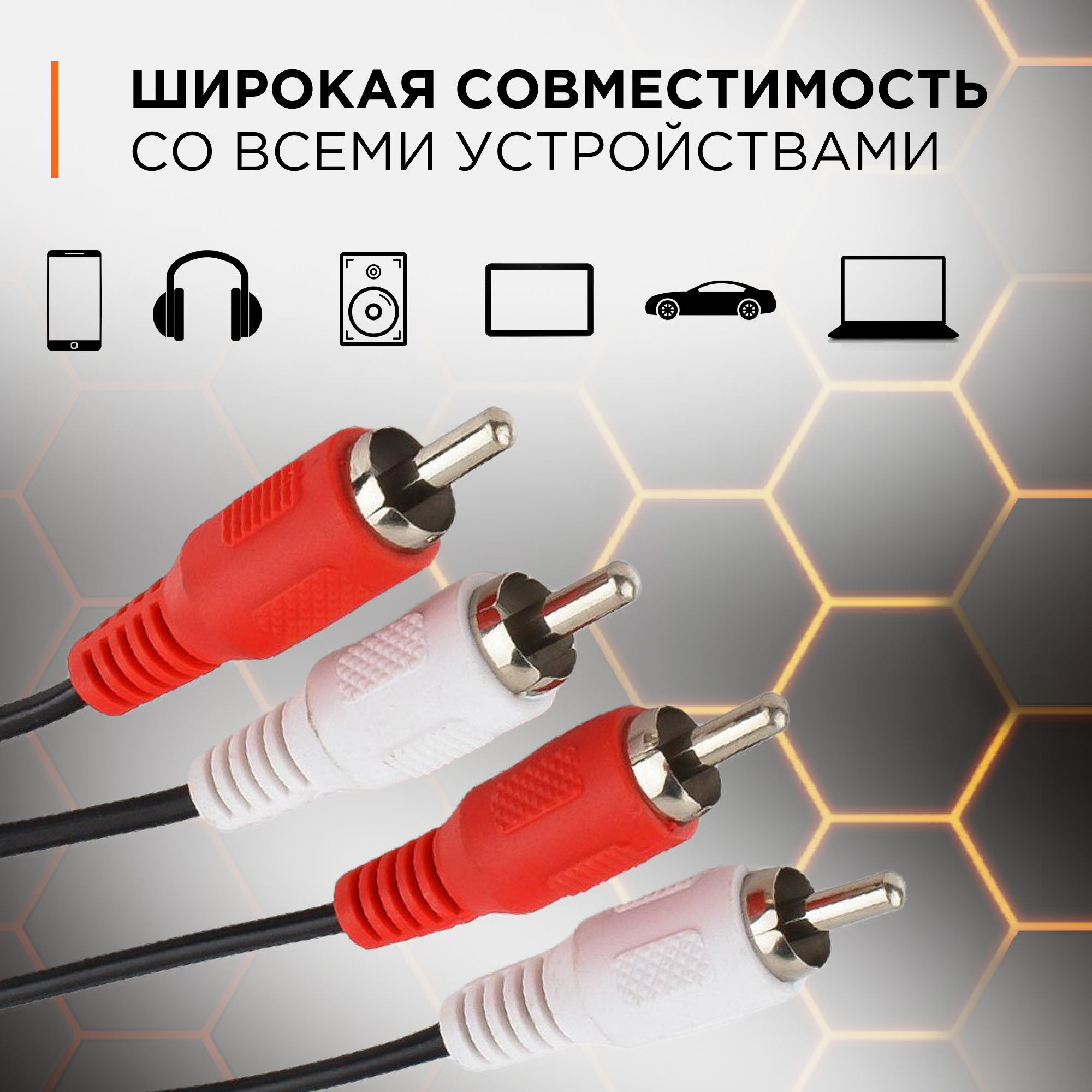 Аудио кабель RCA 3м, тюльпан / колокольчик, стерео