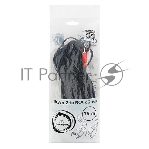 Кабель аудио CABLEXPERT , 2xRCA / 2xRCA, 15м CCA-2R2R-15M
