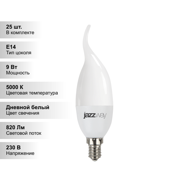 Купить (25 шт.) Светодиодная лампочка Jazzway CA37 9Вт 230В 5000K E14