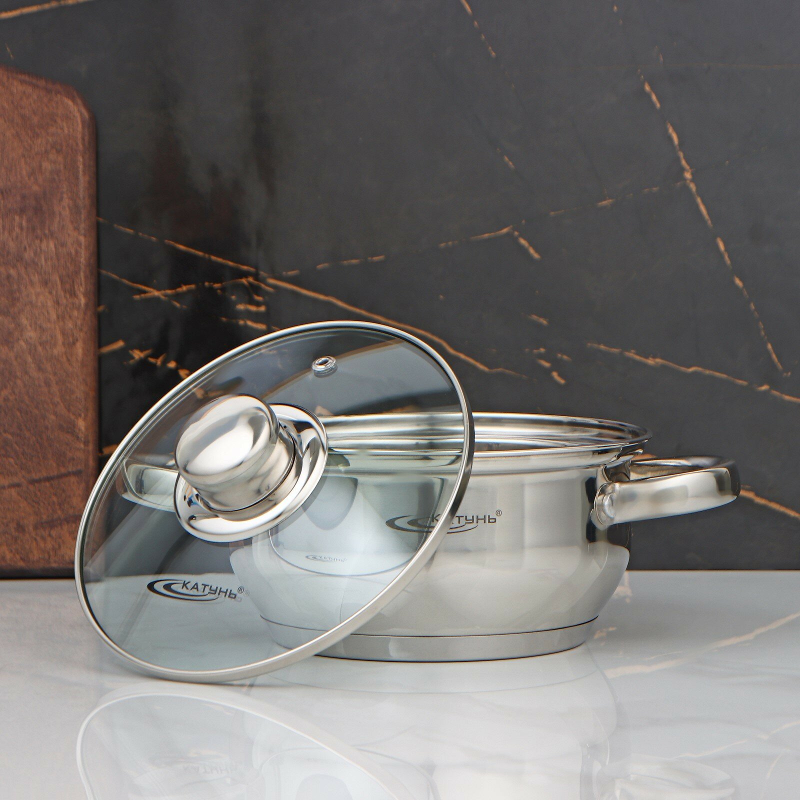 Купить Кастрюля Катунь "Гретта", 1.6 л, d=16 см, стеклянная крышка, капсульное дно, индукция