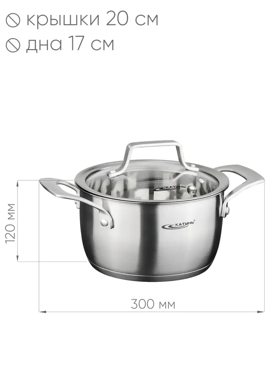 Кастрюля с крышкой Катунь "Галатея", нержавеющая сталь, 5.8л