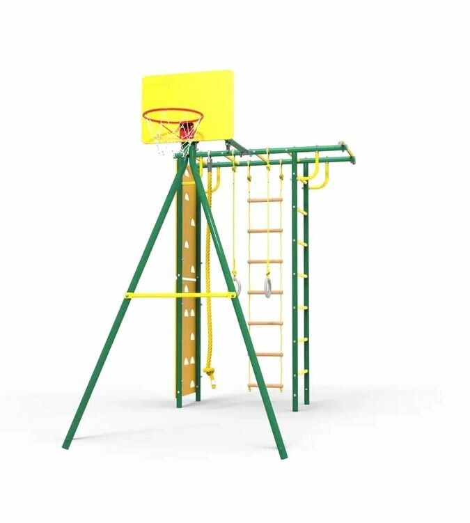 | В комплекте | баскетбольное кольцо, веревочная лестница, гимнастические кольца, канат, рукоход, скалолазная стенка, турник |
