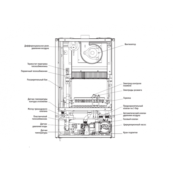 | Защита | газ-контроль, предохранительный клапан, воздухоотводчик |
