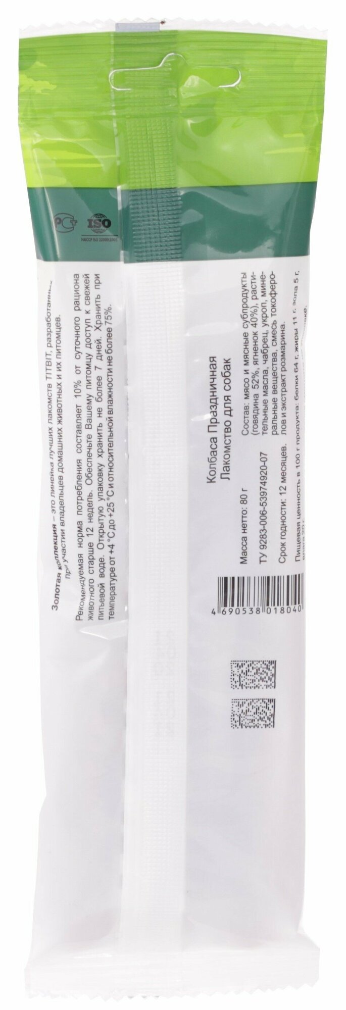 TiTBiT Лакомство для собак Titbit Колбаса Праздничная "Золотая коллекция", 80 г