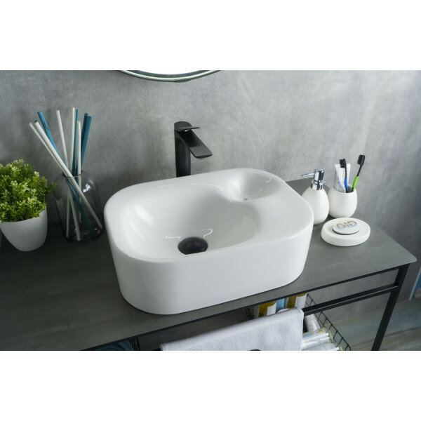 Керамическая накладная раковина с встроенным переливом Gid N9266 с сифоном ORIO A3202
