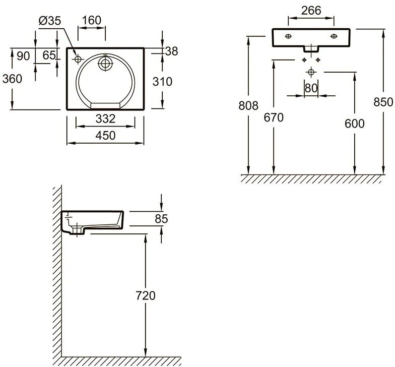 Раковина подвесная Jacob Delafon EGN112-00 Odeon RG Рукомойник 45х36 см, с отвертием под смеситель, белый