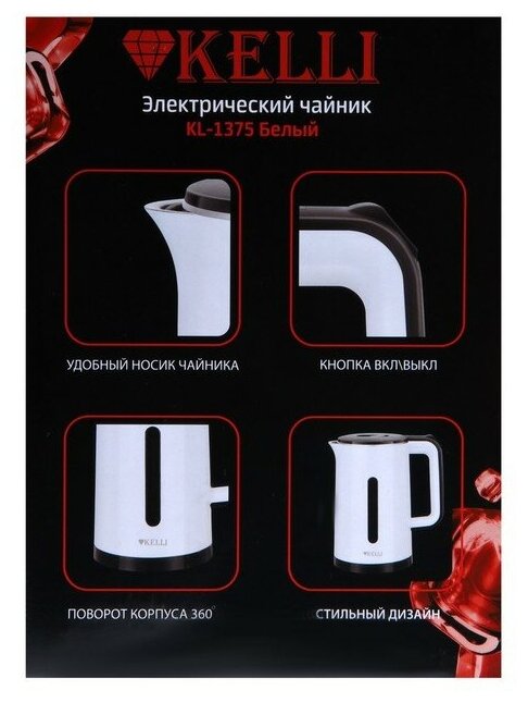 Ниже Вы можете прочитать отзывы на Чайник Kelli KL-1375 Белый объем 1,8л, ознакомится с подробными характеристиками, посмотреть интересные обзоры и фотографии на Чайник Kelli KL-1375 Белый объем 1,8л.