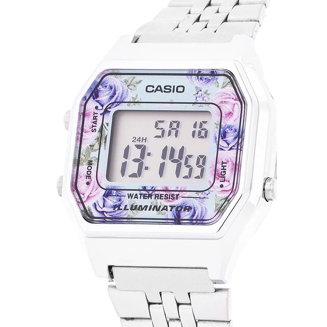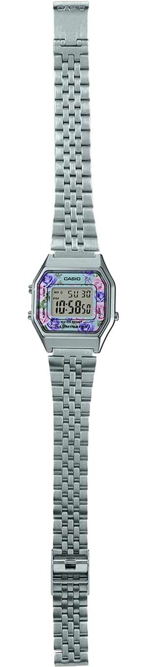 LA680WEA-1E Casio наручные часы кварцевые WR30 (3 атм) женские серебряный секундомер будильник отображение дня недели, отображение числа подсветка дисплея акриловое стекло