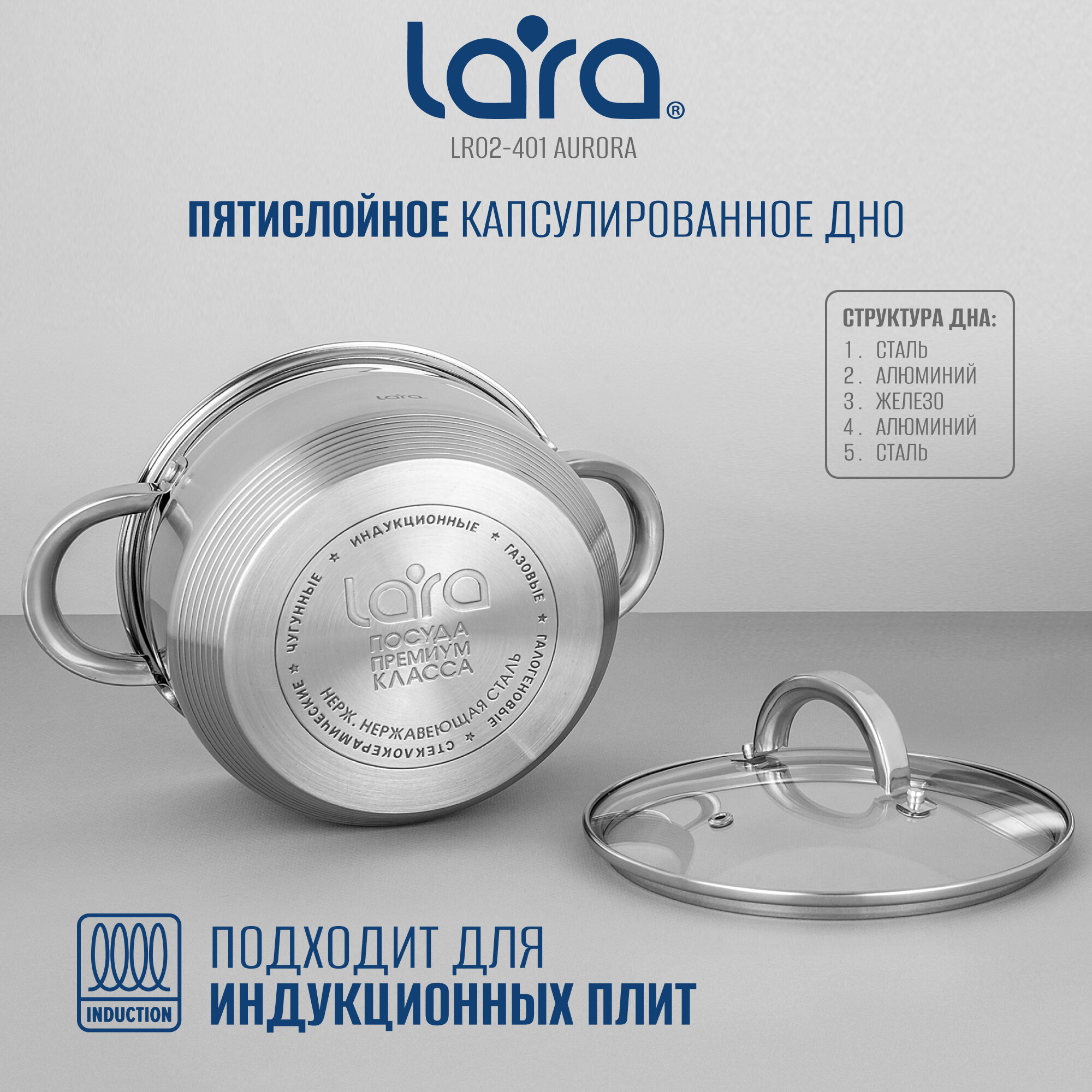Кастрюля LARA LR02-403 AURORA/ 4.8 л/ нержавеющая сталь/ стальные ручки/ капсулированное/ индукционное дно/ крышка с паровыпуском