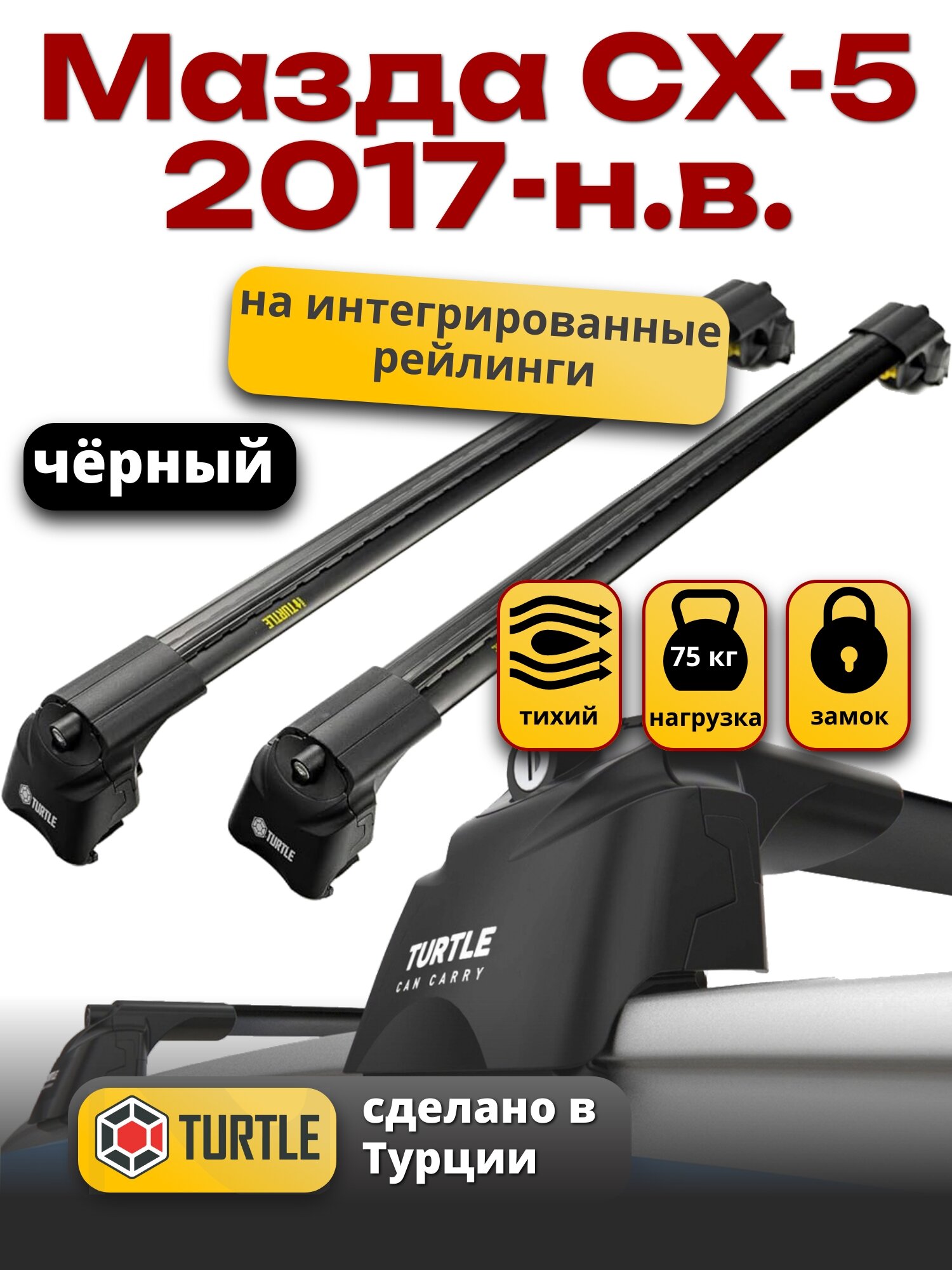Купить Багажник на крышу Мазда СХ-5 2017-2022 на интегрированные рейлинги, черный, Turtle Air-2