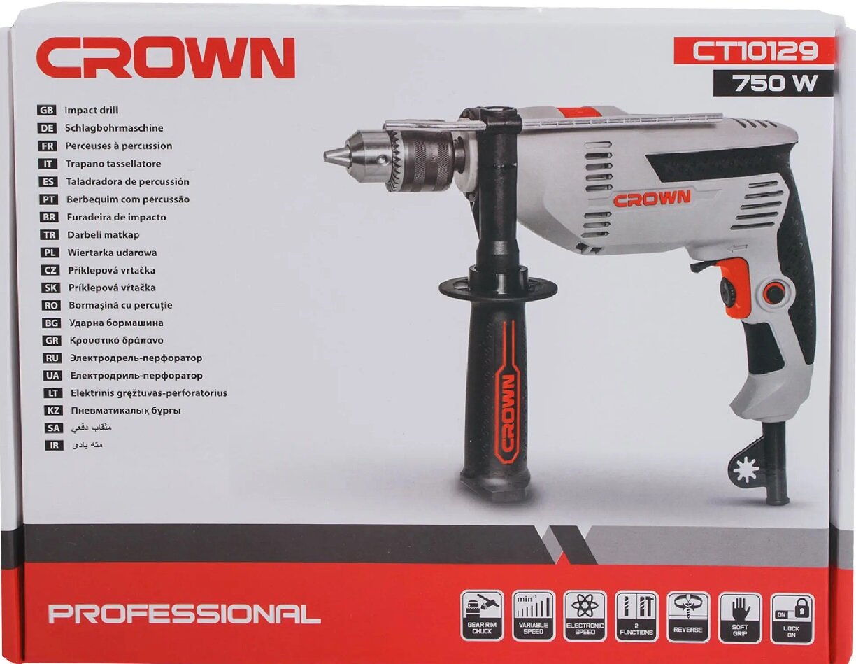 Дрель ударная 750Вт CROWN CT10129 ЗВП коробка