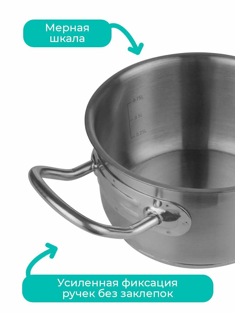 Купить Кастрюля Катунь Общепит-Шеф КТ-ОБ-01, 1,0л (d14см; h7см) металл.кр. ТРС
