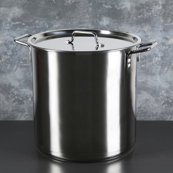 Кастрюля нержавеющая 50л d-50 h-28,5 общепит сварная с металлической крышкой клепаные ручки