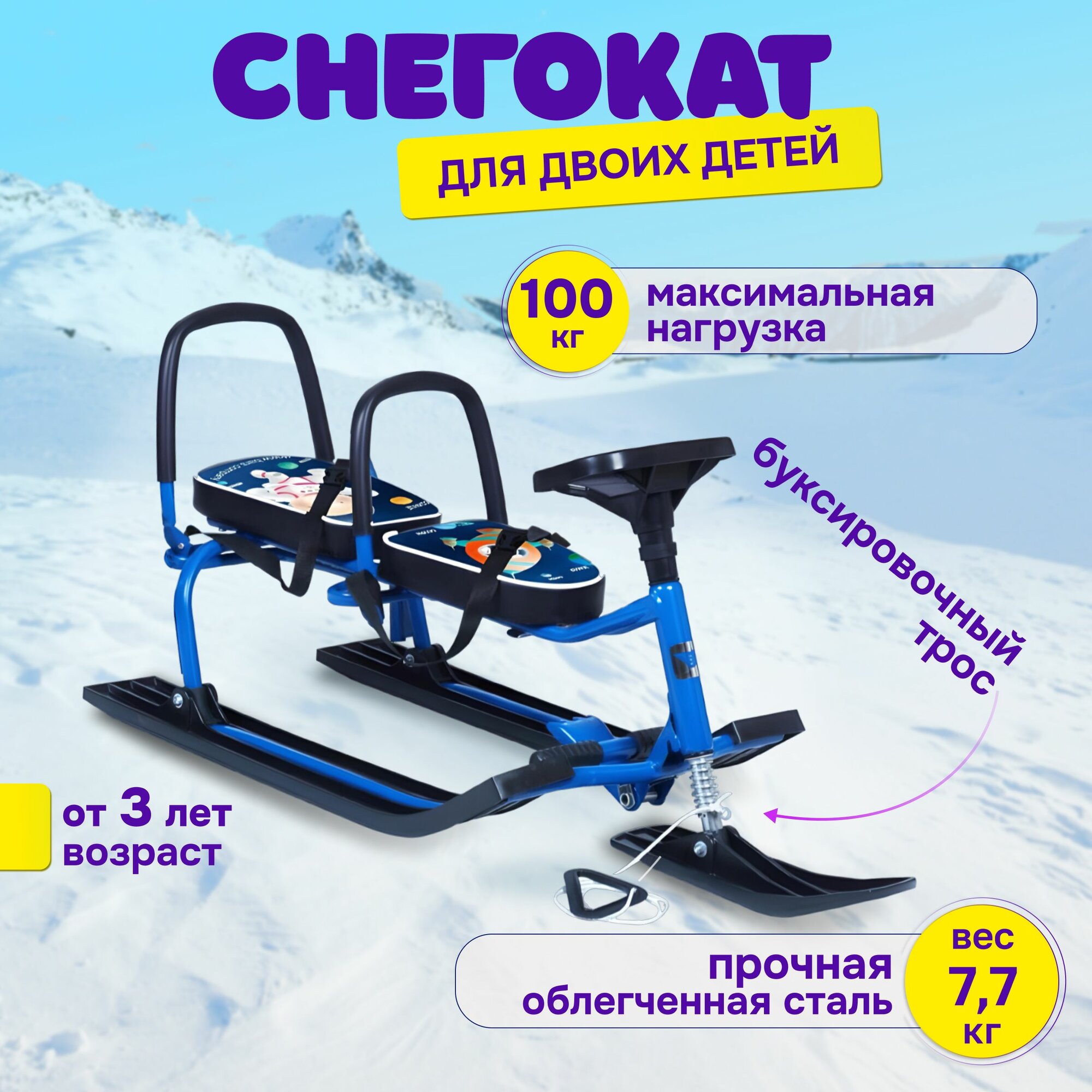 Снегокат 503 TWINS BABY разборный для двоих, с двумя складными спинками, синий