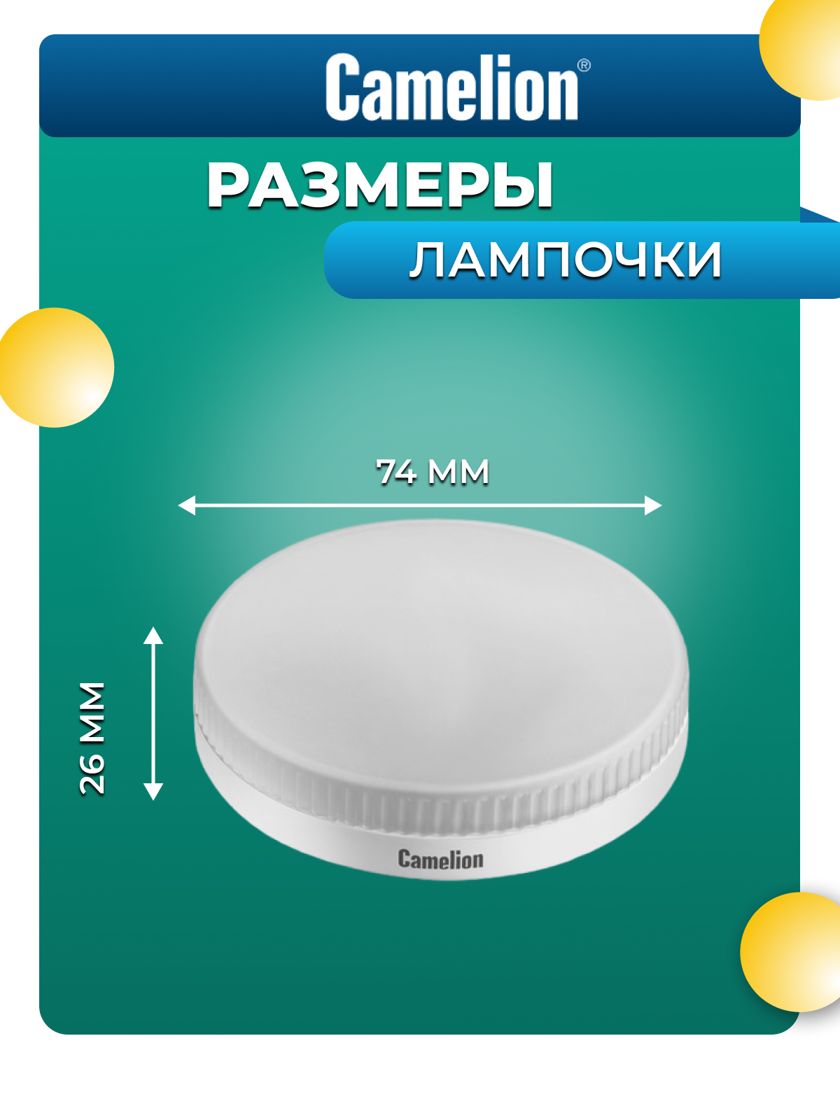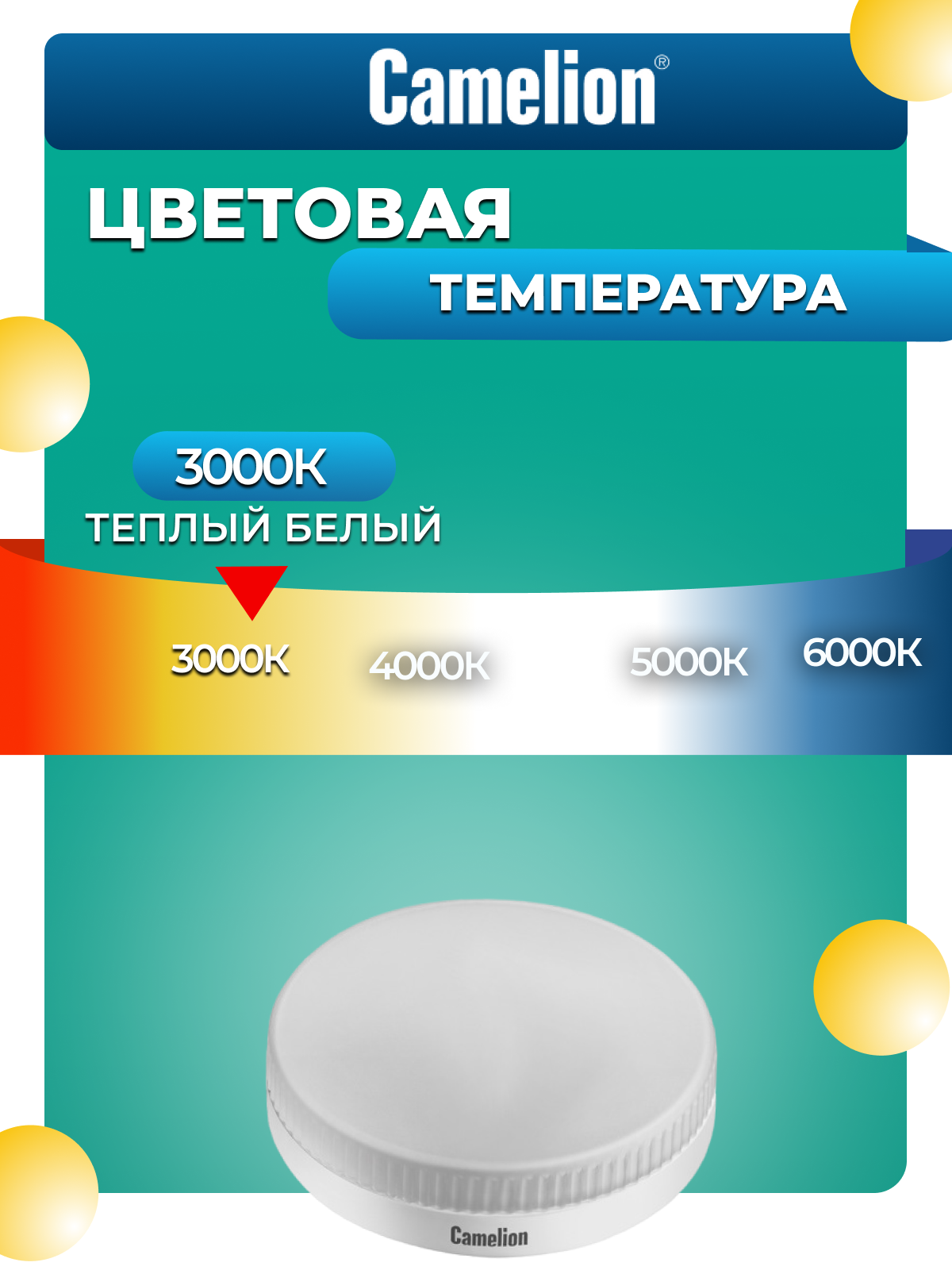 Светодиодная лампочка GX53 Camelion, 6W, 3000K, теплый белый свет