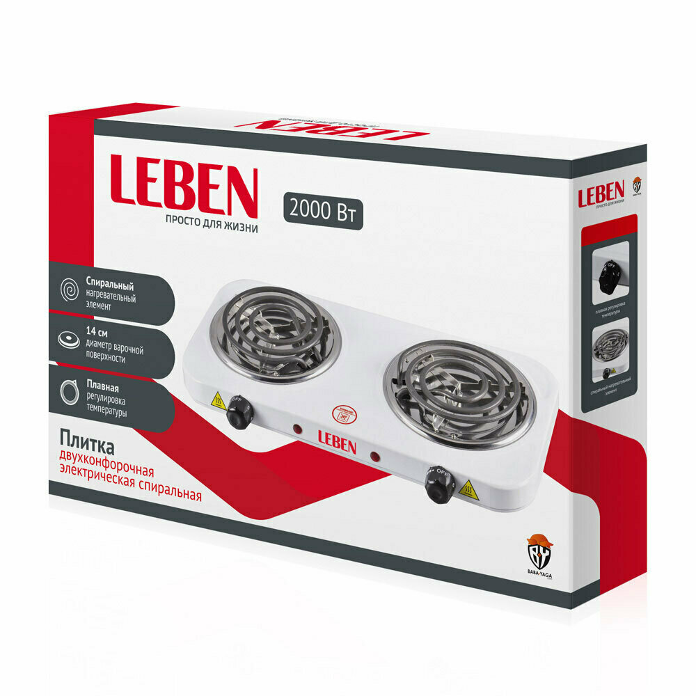 Плитка двухконфорочная LEBEN 2000 Вт спираль d.14 cм