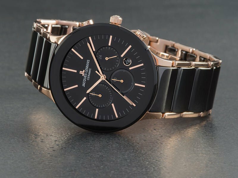 Наручные часы Jacques Lemans 1-1854C, мужские кварцевые керамические часы Жак Леман с хронографом и датой на комбинированном браслете (сталь и керамика) интересное:
