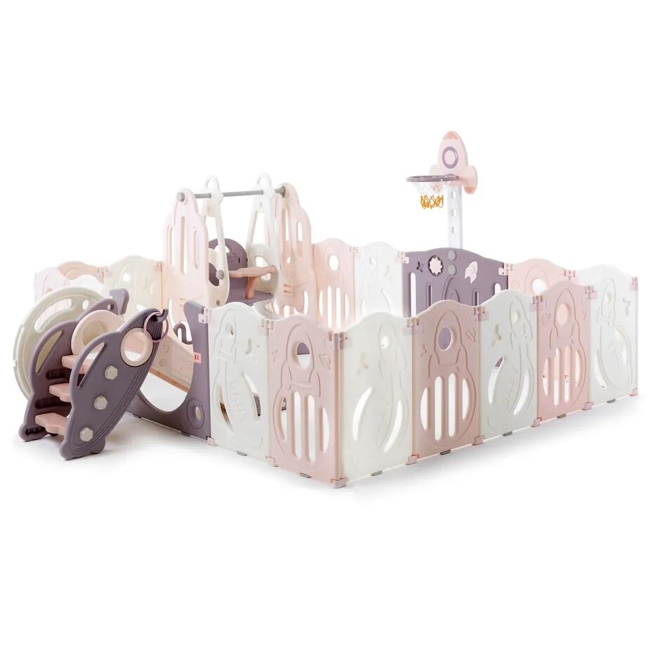 Манеж UNIX Kids Supreme Space Rose, коврик, горка, баскетбольное кольцо, розовый, 160x160 см