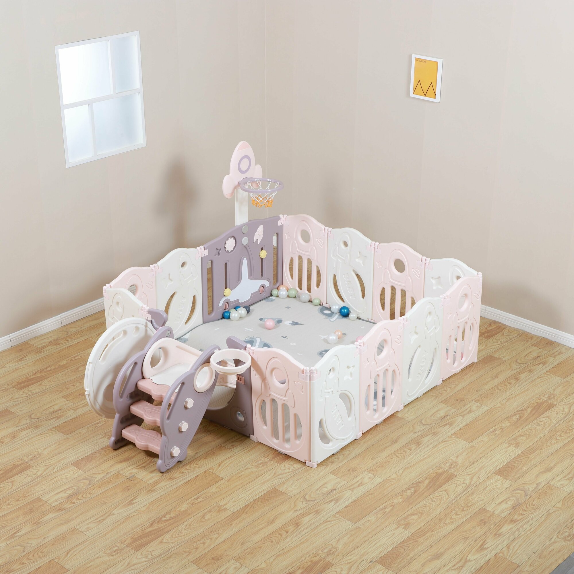 Манеж UNIX Kids Supreme Space Rose, коврик, горка, баскетбольное кольцо, розовый, 160x160 см