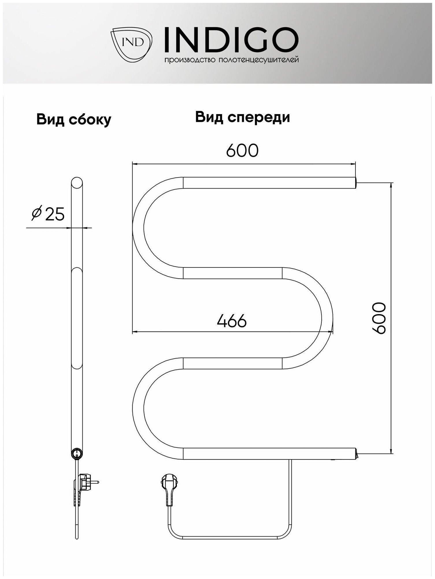 Полотенцесушитель M б/п (electro) 50/50 (кнопка, прям.провод, Полиров.) INDIGO