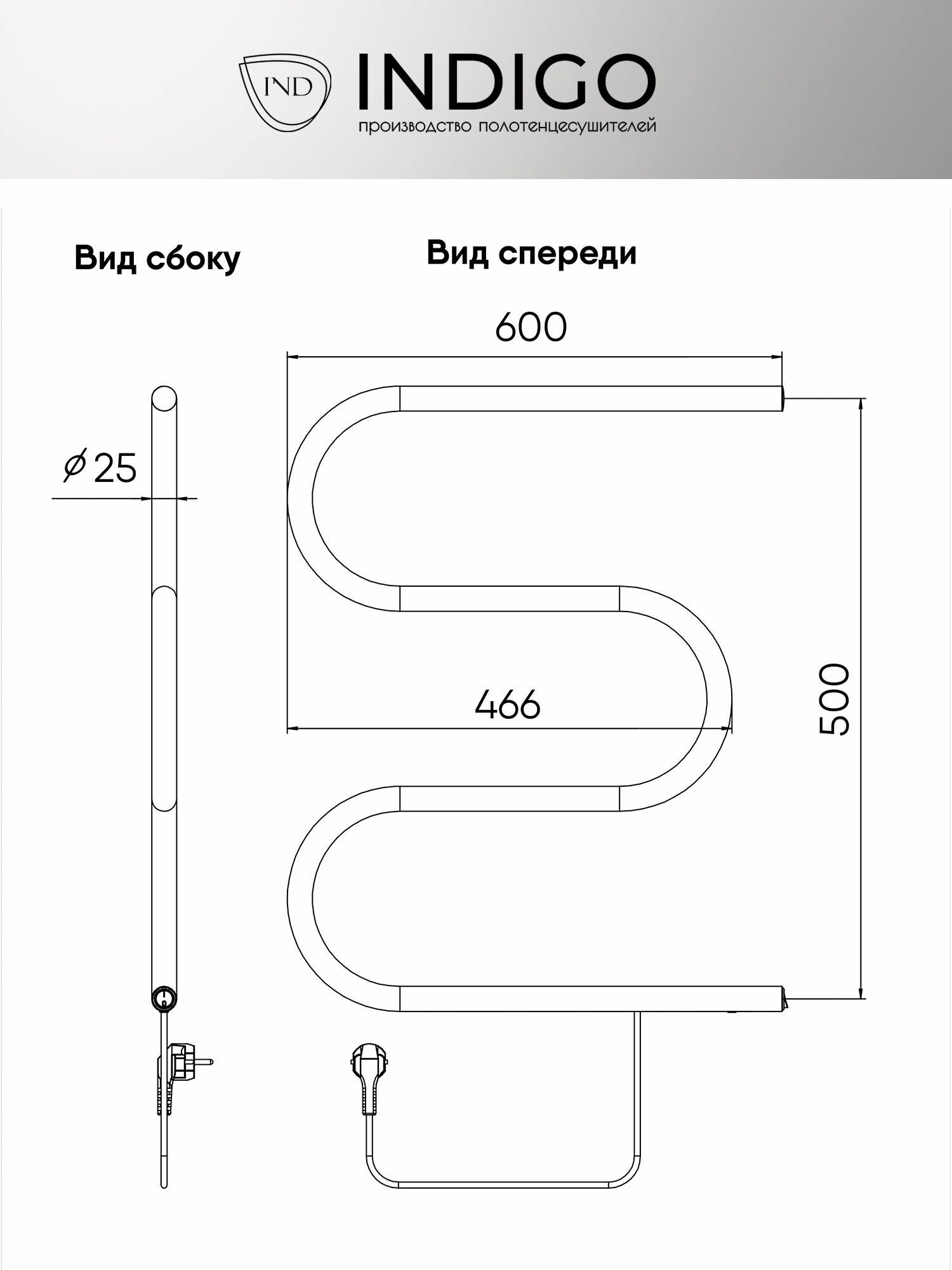 Полотенцесушитель электрический INDIGO M-образный 50/50