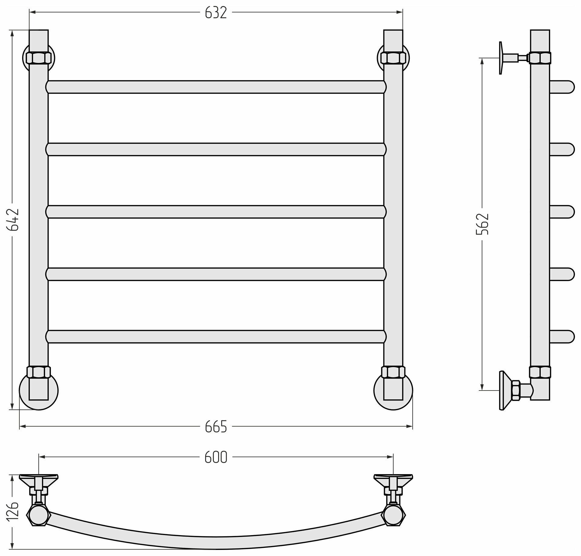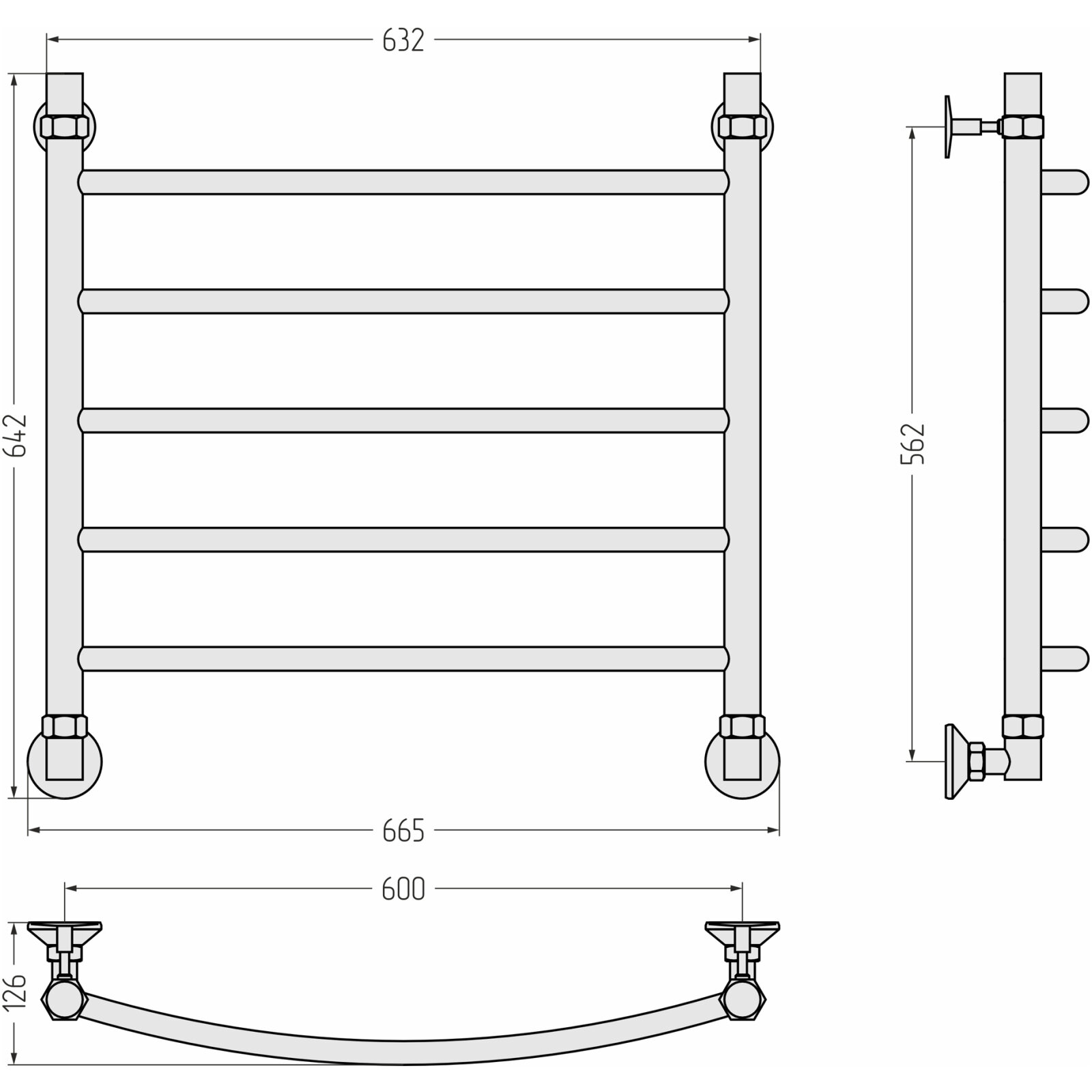 Полотенцесушитель водяной Стилье Аксиома-20, 600x600, выгнутая, нержавеющая сталь 00662-6060