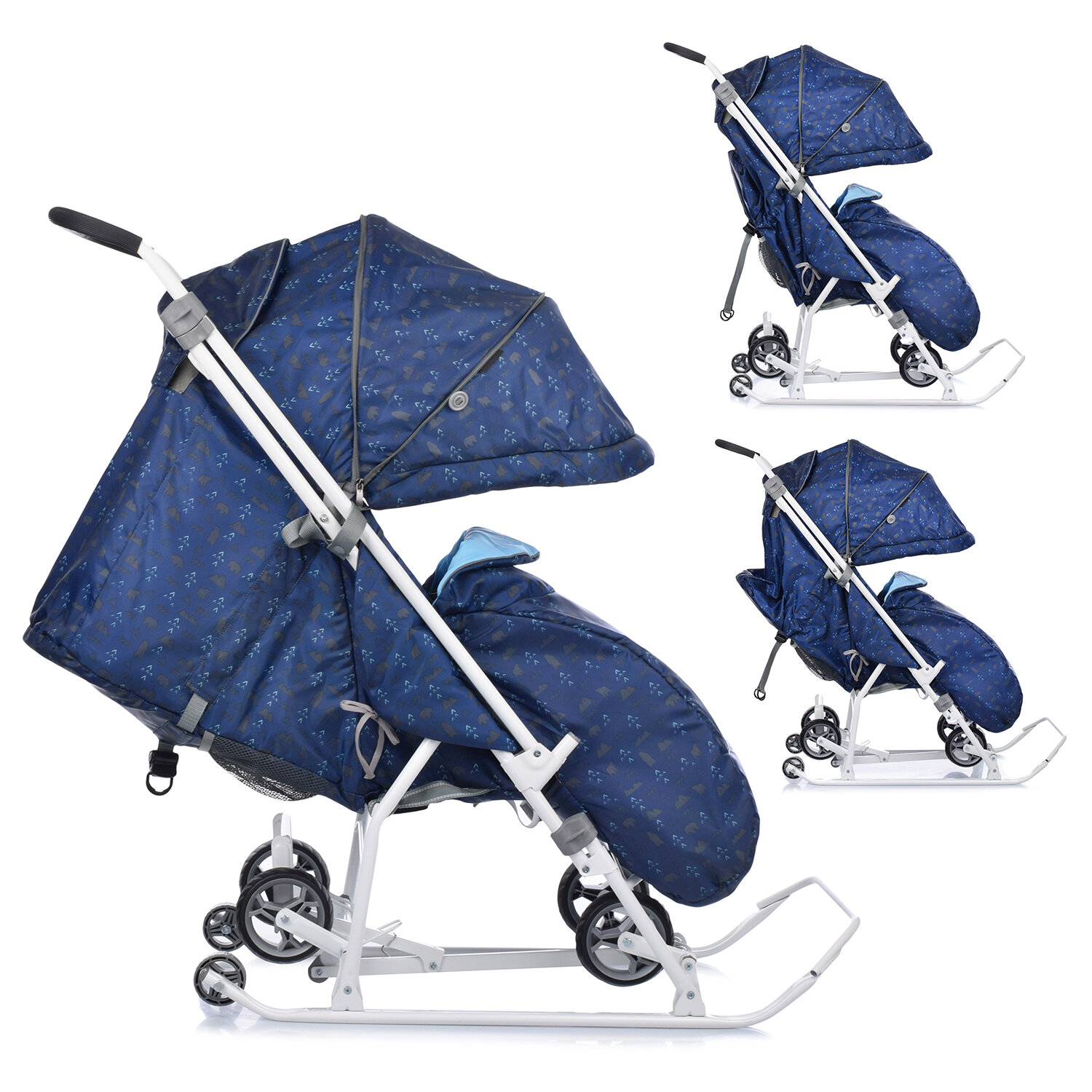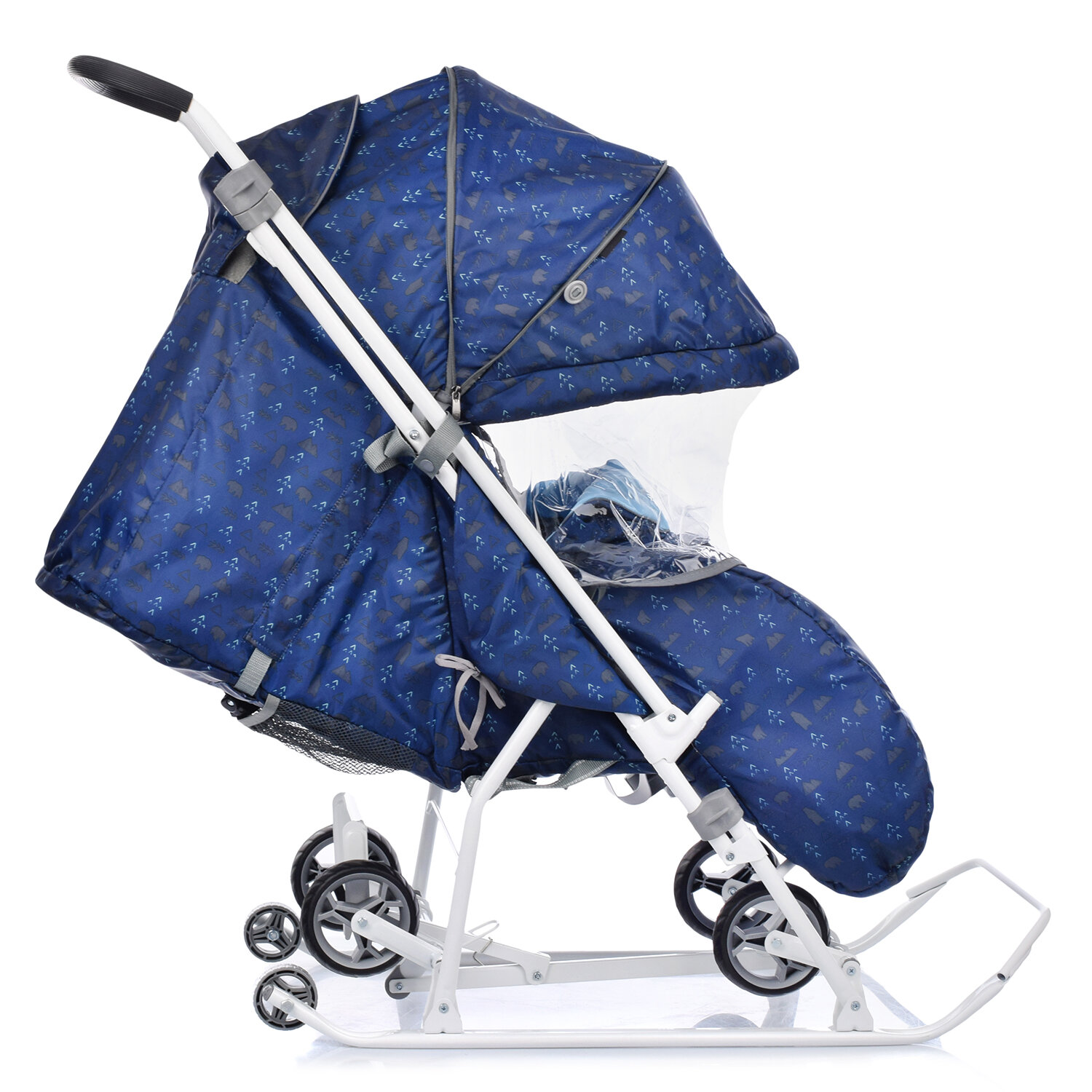 Санки-коляска Nika складные детские "Наши Детки 3-1К", принт голубой с облачками, перекидная ручка, облегченный каркас Ника с бампером выдвижные колеса, возраст 1+ / 1 шт