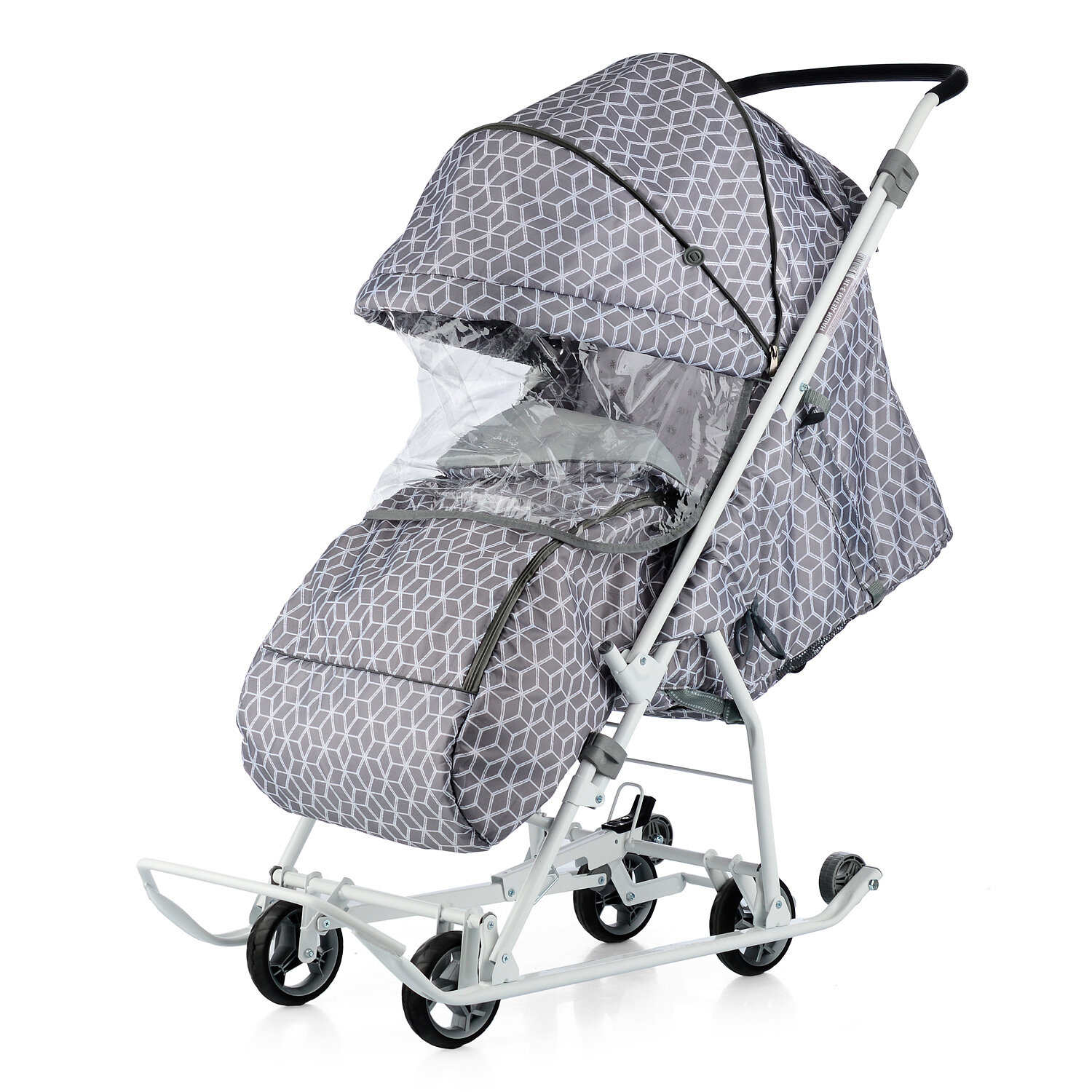 Санки коляска детские зимняя с колесами Nika"Наши детки"3-1К, Цвет: ромбики серый