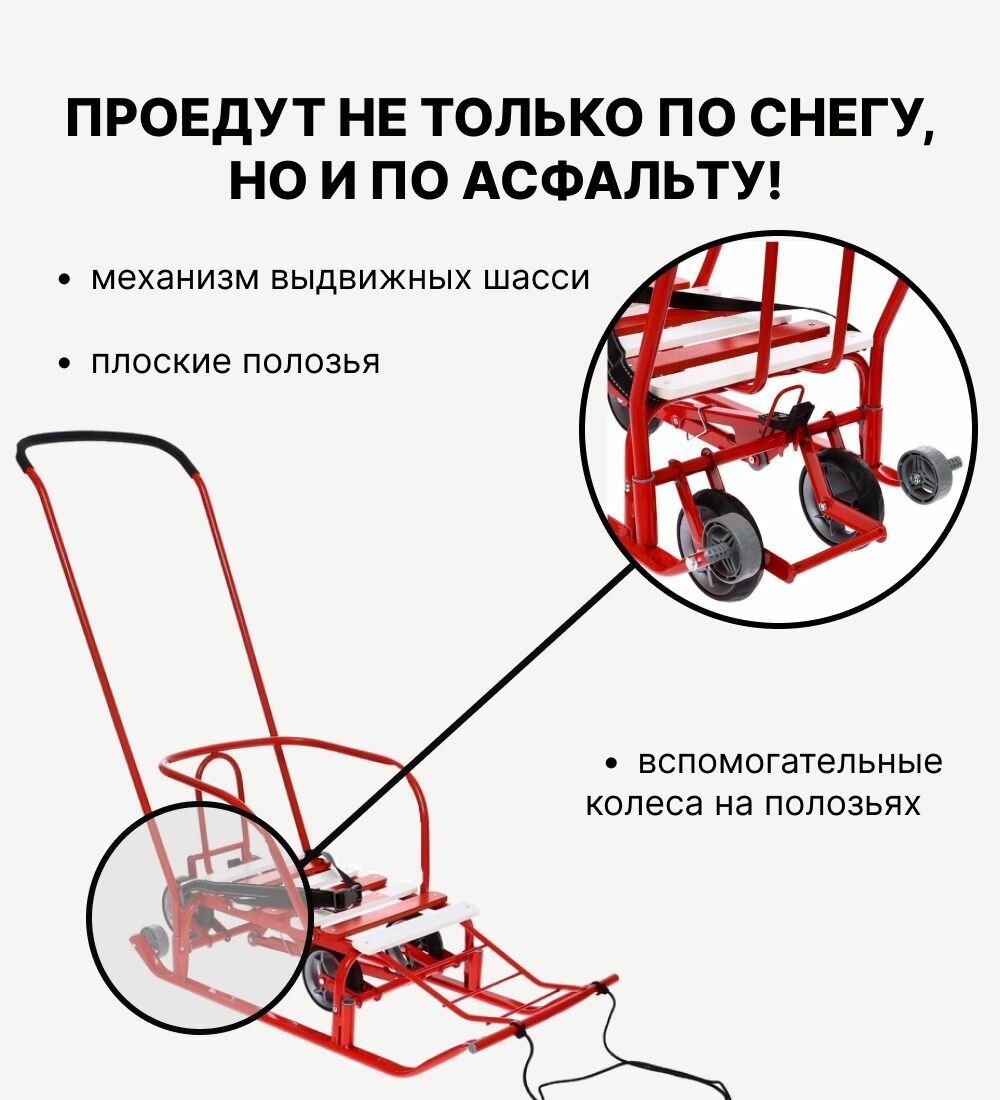 Санки Nika Тимка 5 универсал+ Т5У+, переставная ручка, ремень безопасности, красный/алый