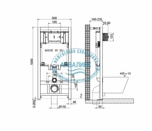 | Дополнительная информация | совместима со всеми видами подвесных унитазов; рама испытана нагрузкой 400 кг; в комплекте: крепежные элементы для унитаза, крепежные элементы для рамы, комплект соединительных патрубков для унитаза, фановый отвод для слива и переходник ø90/110, G1/2” запорный клапан |