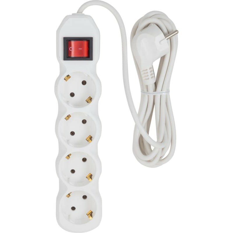 Сетевой фильтр с предохранителем 3м 4 розетки старт удлинитель бытовой с заземлением, защита от скачков напряжения