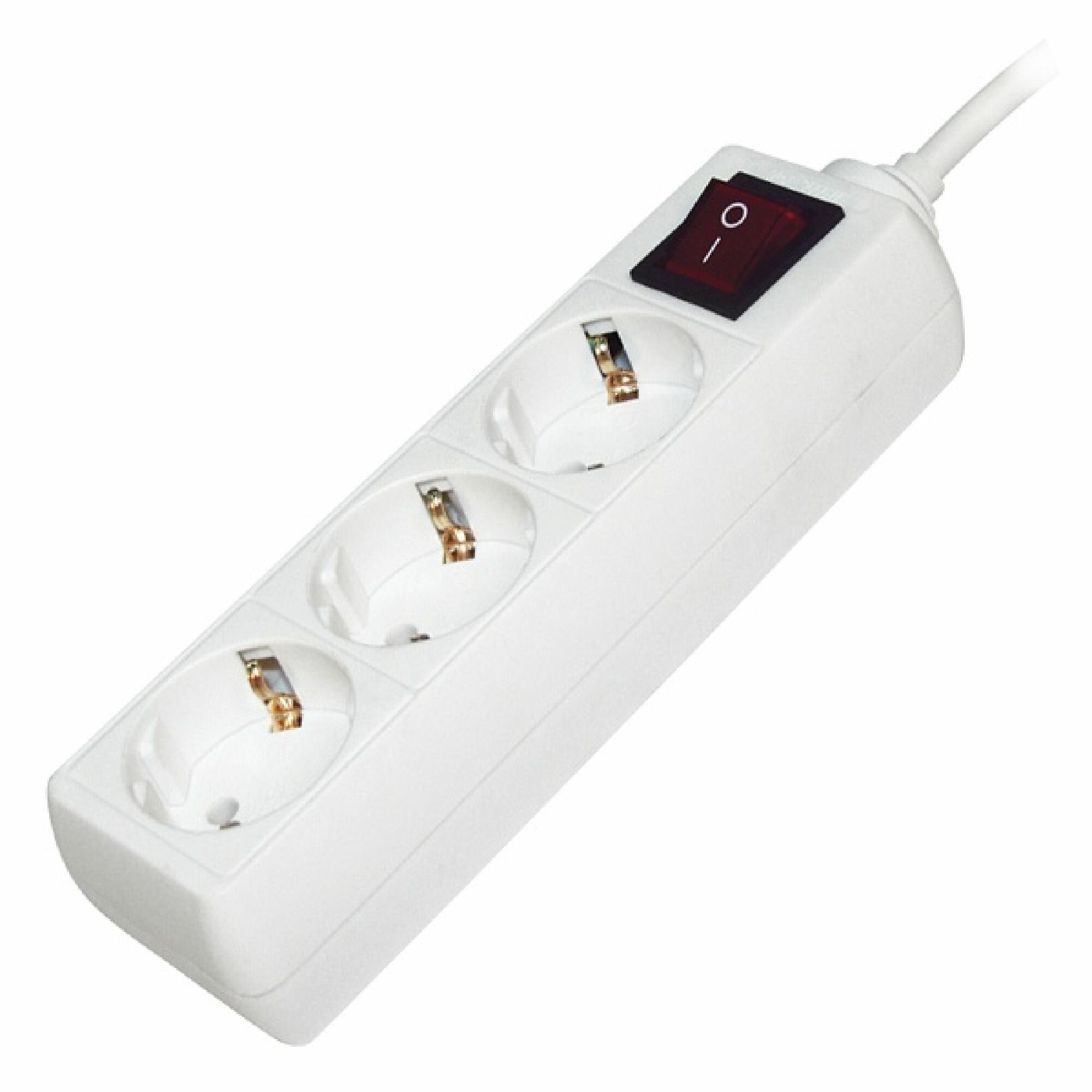 Удлинитель с выключателем IEK У03К-выкл, ПВС 3 x 1 мм², с заземлением, 3 розетки, 3 м, белый