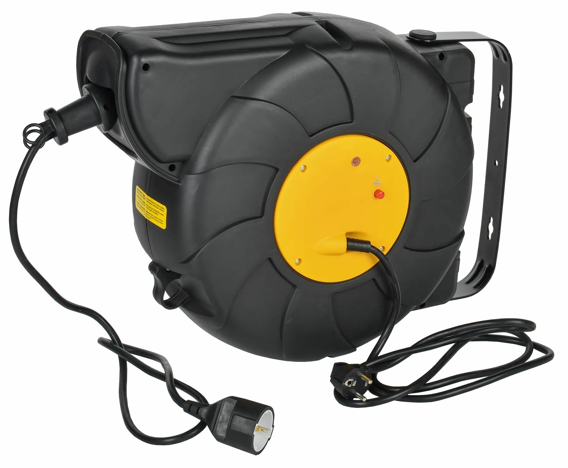 Удлинитель силовой на катушке IEK / ИЭК Twist УК15 с автосмоткой, 2P+PE провод КГ 3х1.5мм2, 4 розетки черный, IP44 15м, TW-KP27-16-04-15-44 / электрика
