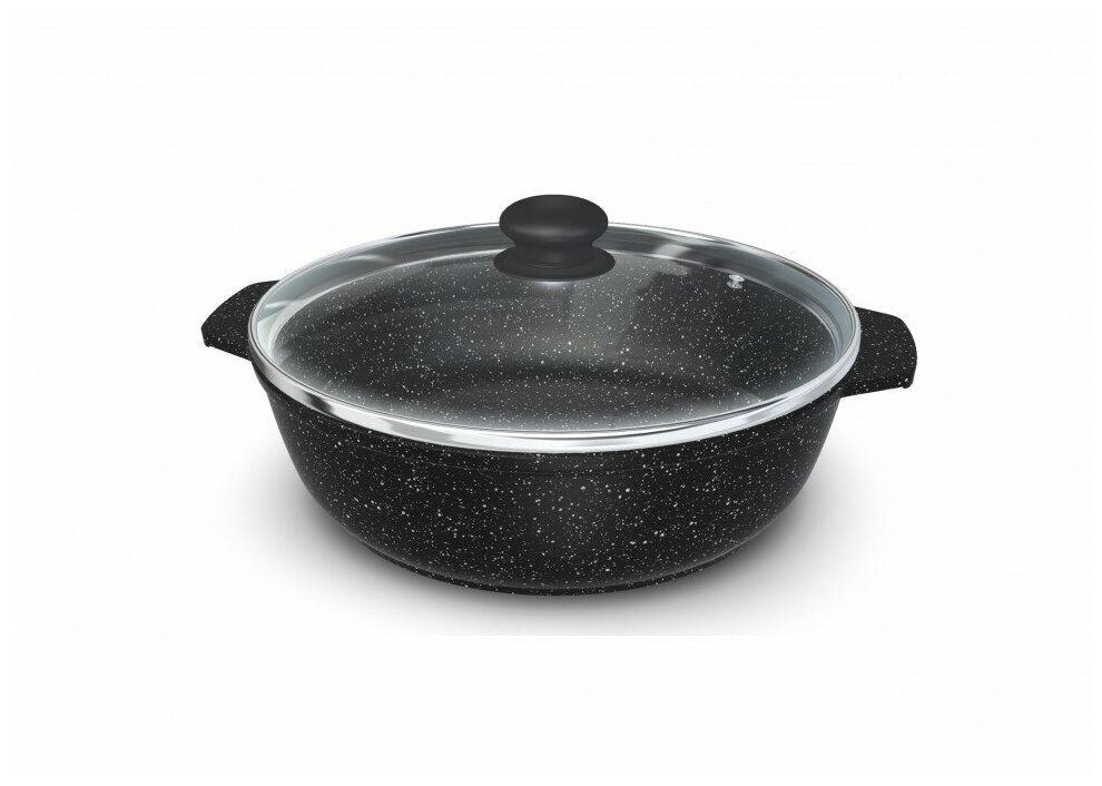 Жаровня со стекл. крышкой 4л Каменная Черный гранит НМП