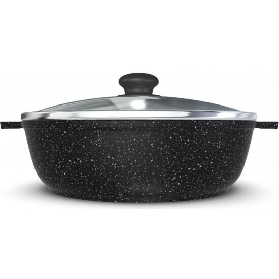 Жаровня со стекл. крышкой 4л Каменная Черный гранит НМП