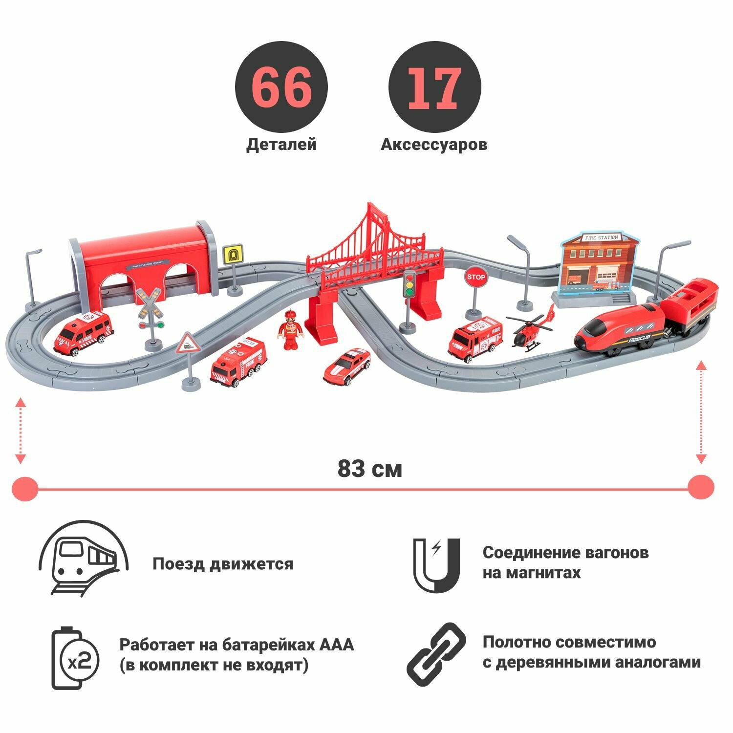 Купить Детская железная дорога Givito "Служба спасения, 66 предметов", на батарейках G201-007
