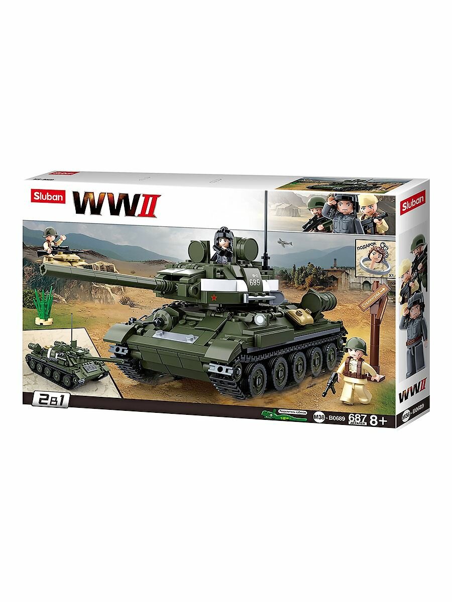 Конструктор SLUBAN WW2 M38-B0689 Танк, 687 дет. (два варианта сборки)
