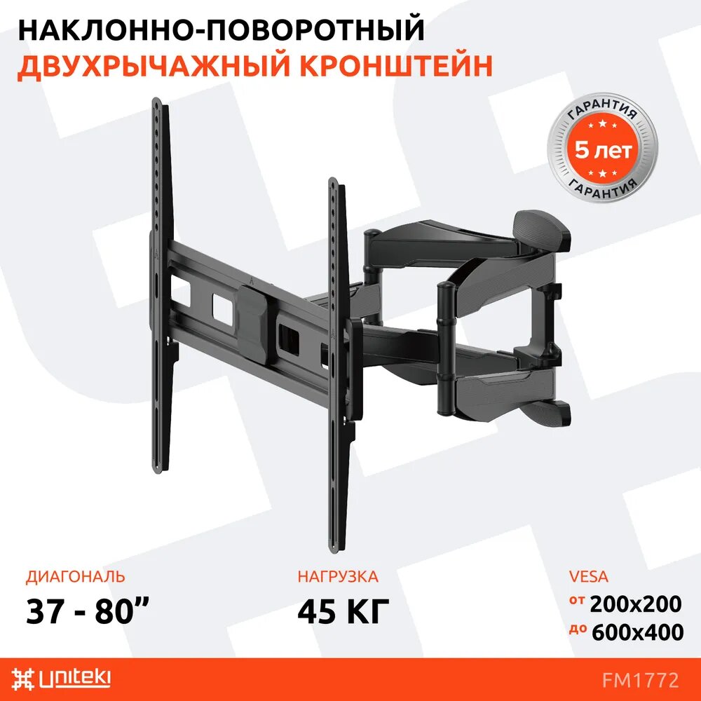 Кронштейн для телевизора на стену наклонно-поворотный с диагональю от 37"до 80" UniTeki FM1772,черный